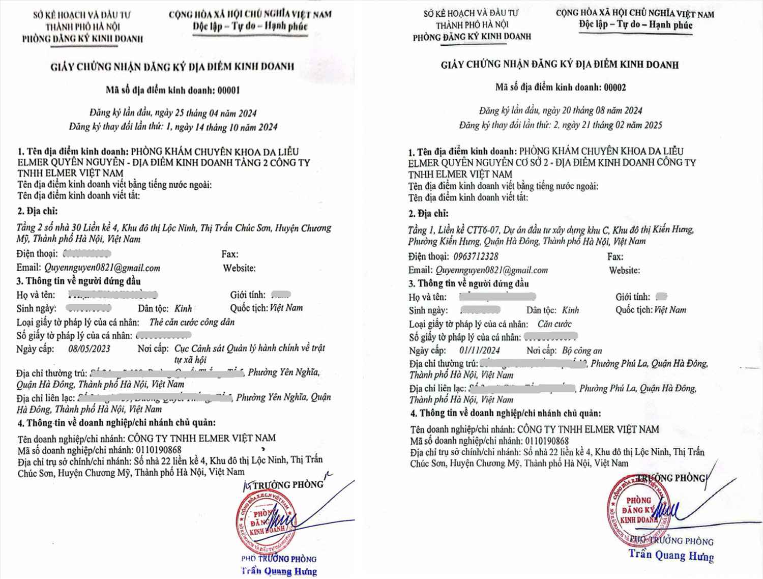 2 phòng khám da liễu được Sở Y tế cấp phép đầy đủ.